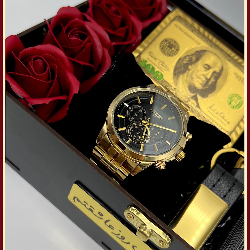 جعبه چوبى تايپوگرافى ( جان من شدى) طلايي با تقويم