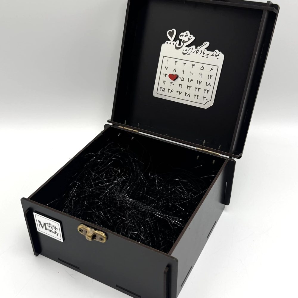 جعبه چوبى تايپوگرافى ( جان من شدى) طلايي با تقويم